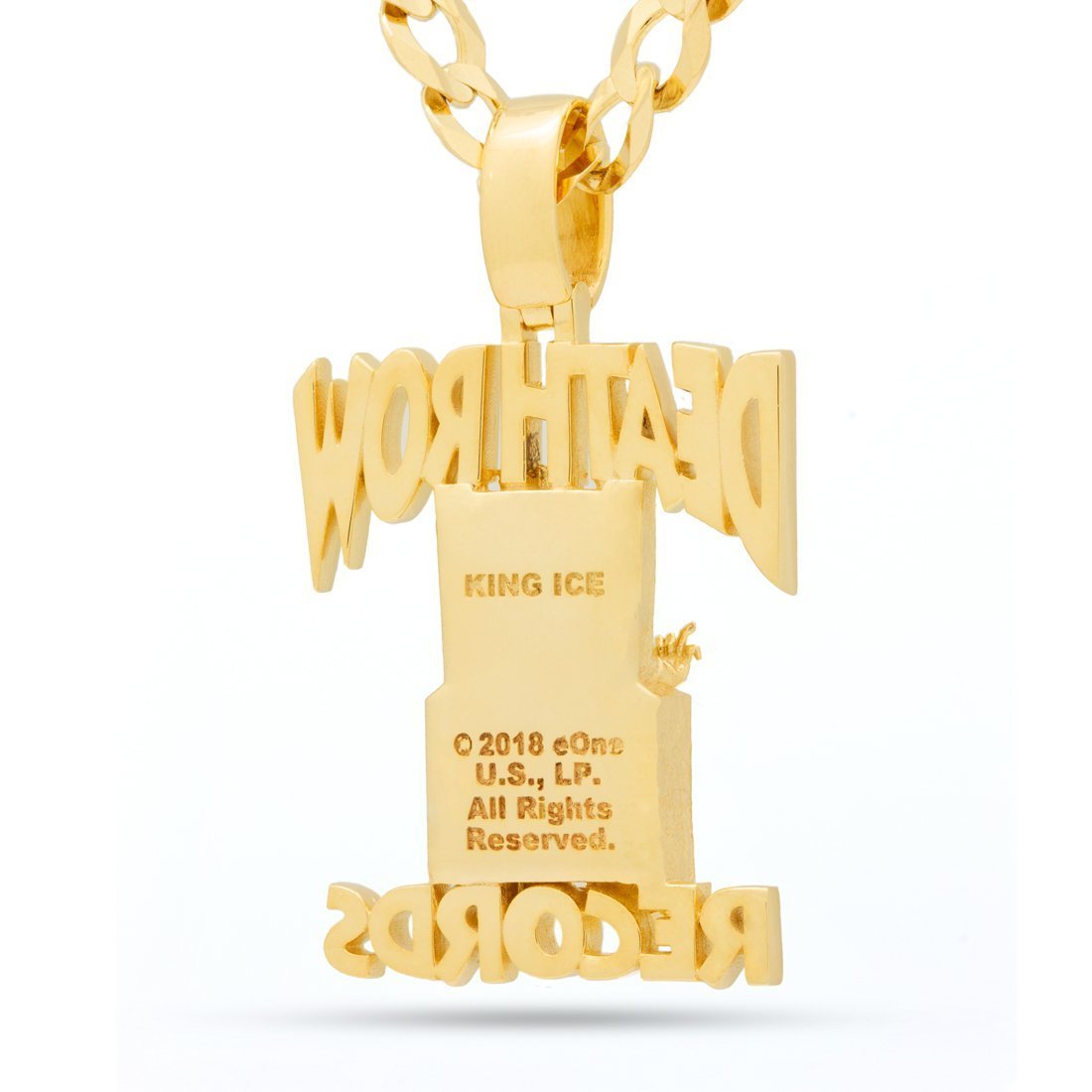 Using solid 14K Gold (85 grams w/ chain) and fine attention to detail, the Death Row necklace perfectly matches the iconic brand label.